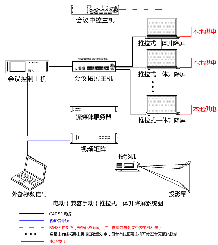 3、系統可(kě)以擴展第三方網絡中控,從(cóng)而實現(xiàn)任意會(huì)議(yì)終端(經過授權)随時(shí)對(duì)周邊設備進行(xíng)控制(zhì);第三方中控γ可(kě)通(tōng)過RF/RS 485協議(yì)對(duì)升降進行(xíng)統一(yī)控制(zhì)。