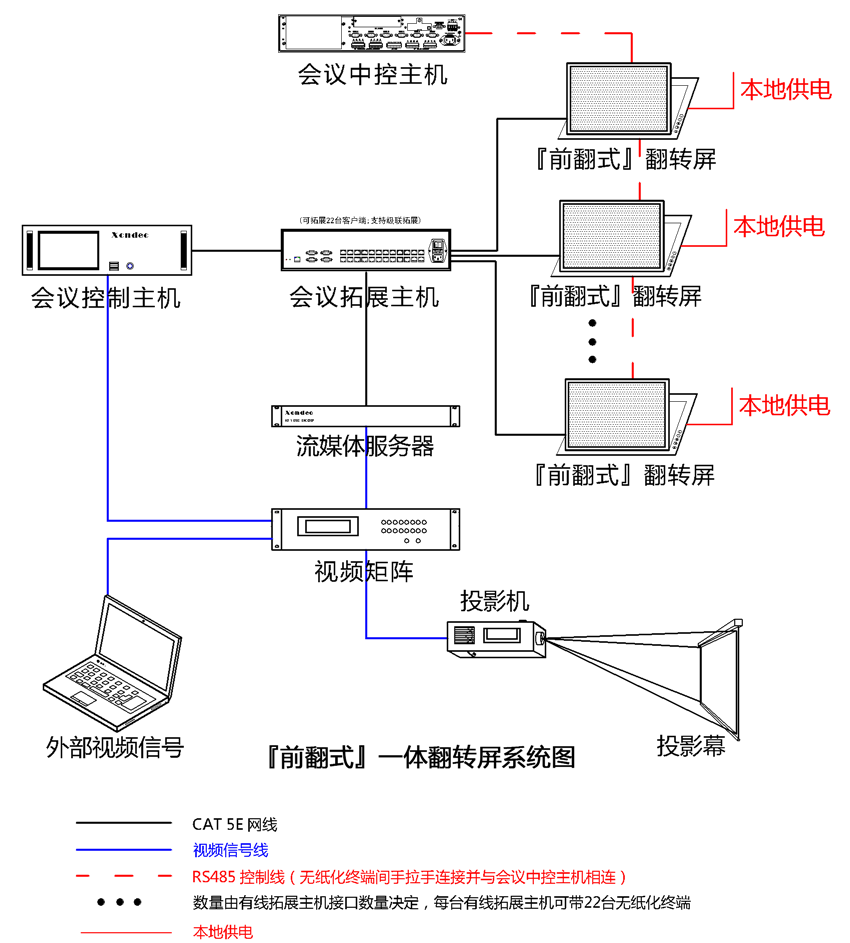 3、系統可(kě)以擴展第三方網絡中控,從(cóng)而實現(xiàn)任意會(huì)議(yì)終端(經過授權)随時(shí)對(duì)周邊設備進行(x≠íng)控制(zhì);第三方中控可(kě)通(tōng)過RF/RS 485協議(yì)對(duì)翻轉進行(xíng)統一(yī)控制(zhì)。