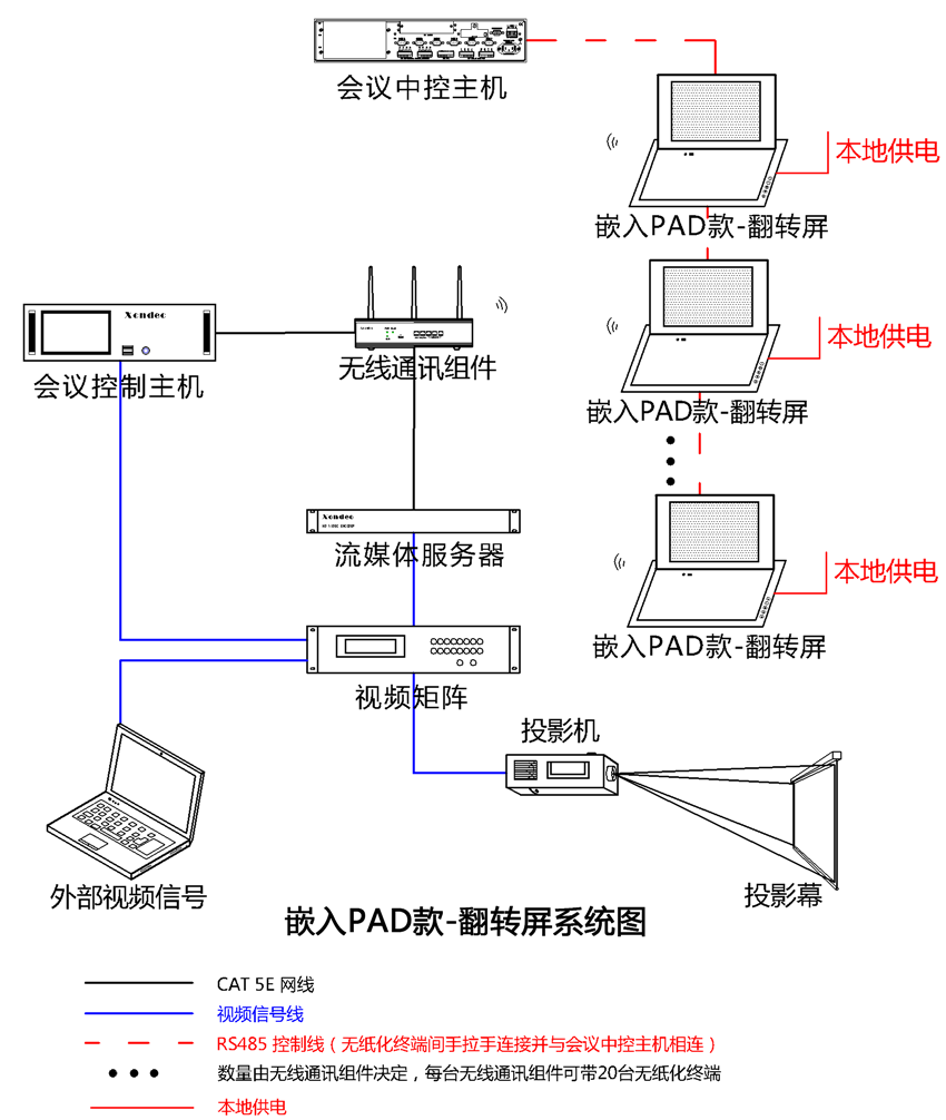 8、可(kě)選的(de)Internet接入允許客戶端訪問(wèn)外(wài)網或企業(yè)內(nèi)網,可(kě)實現(xiàn)多(duō)會(huì) 議(yì)室合并,也(yě)可(kě)異地(dì)共享同步無紙(zhǐ)化(huà)會(huì)議(yì)。